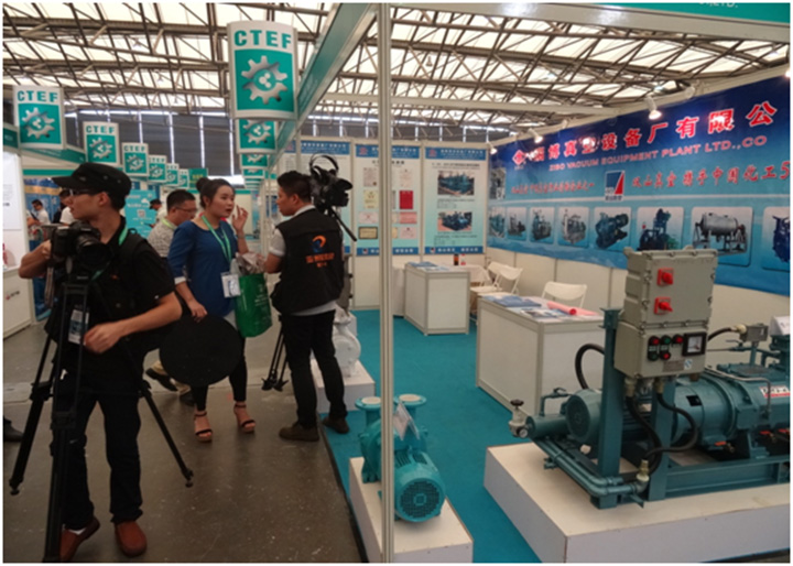 摘要:8月26日我公司參加了在上海舉辦的“2015中國(上海)國際化工技術(shù)裝備展覽會”。展會上公司展出的多款產(chǎn)品:鈦合金真空泵、螺桿式干式真空泵、2BE、2BV水環(huán)式真空泵、2X旋片式真空泵得到了參會人員的好評和歡迎。